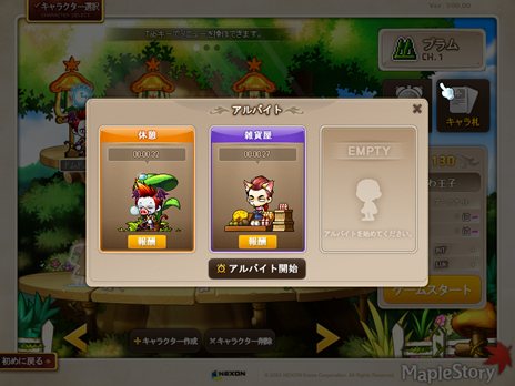 「アルバイト」は、ゲームプレイ時に使用していないキャラクターに休憩、薬草採集、採鉱などのアルバイトをさせておき、決められた時間が経つとアルバイトの種類や時間に応じた報酬を得られるシステムです。