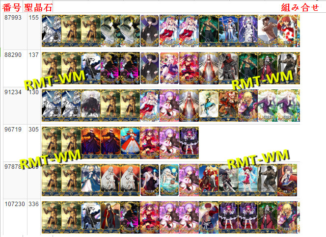 第96弹 Fate/Grand Order(FGO) RMT 複数SSRの組み合せ選択可能!