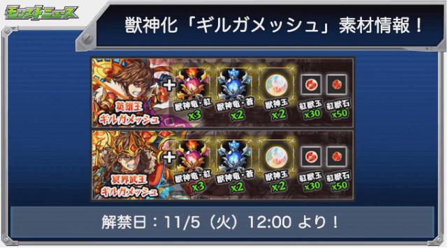 今回モンスターストライク(モンスト)はギルガメッシュ獣神化が発表、ステータスや解禁日などの情報をお伝えいたします。