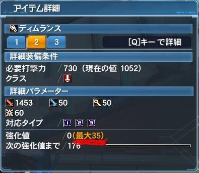 強化上限は、アイテム詳細から2番のタブを表示すると確認できる。