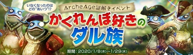 「ArcheAge(アーキエイジ)」において、2020年1月8日(水)定期メンテナンス後より、謎解きイベント「かくれんぼ好きのダル族」や、新規家具が手に入る「女神の時計ログインスタンプ」を開始いたしました。