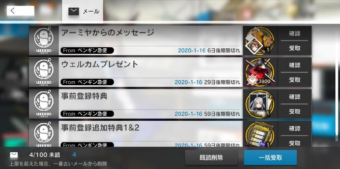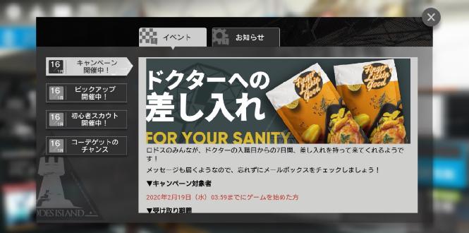 2020年2月19日(水)までにゲームを始めると、メールから「ドクターへの差し入れ」を受け取ることができます。