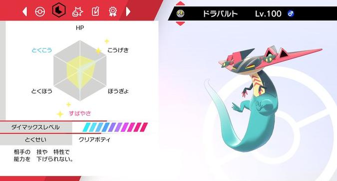 特性:すりぬけ、相手の壁や身代わりをすりぬけて攻撃できる。クリアボディ、相手の技や特性で能力を下げられない。
