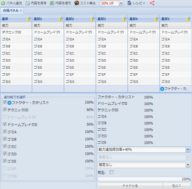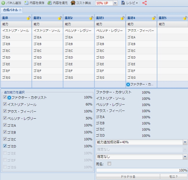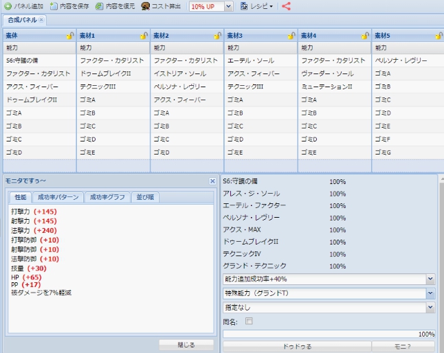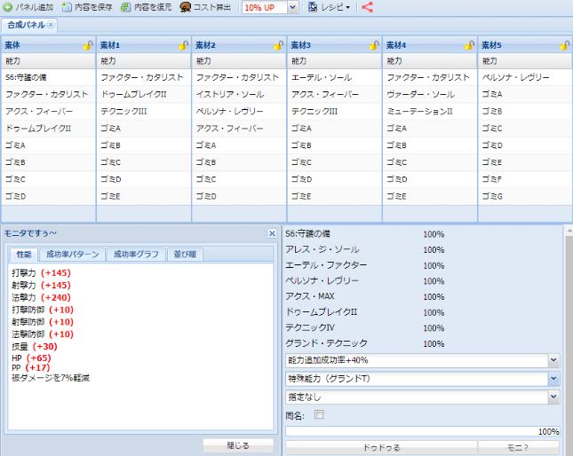 【PSO2 RMT】『ファクターC』使用SOP付特化ステ240HP65PP17の8スロユニットのレシピ