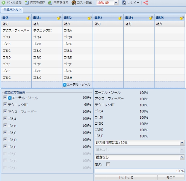 ☆13ユニット向けのSOP付き8スロOP付けレシピです。『特殊能力(ファクターC)』と『特殊能力(エーテルS)』を使用します。