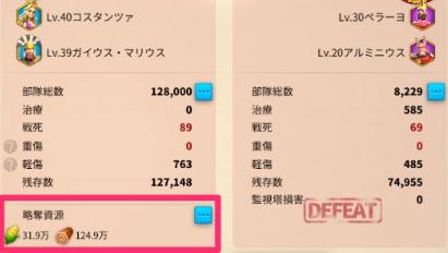 敵の領地を攻撃して防衛部隊との戦闘に勝利すると、領地に保管されている資源を略奪できる。場合によっては採集を行うよりも、短時間で多くの資源を獲得することが可能だ。