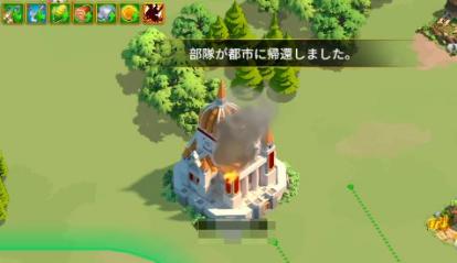 敵領地から資源を略奪するのは、戦闘に勝利したタイミング。敵のHPが0になるギリギリ前に攻城部隊を戦闘に参加させて、攻城部隊を失うことなく大量の資源を奪うことができる。