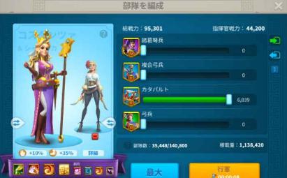 採集指揮官の中には積載量や兵力上限を上昇させるパッシブを持つものがいる。この2つの効果で一度に多くの資源を略奪できるようになるため、攻城部隊には採集指揮官を編成しよう。