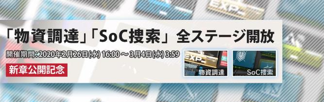 以下の期間中、通常は曜日ごとに部分的に開放される「物資調達」、「SoC捜索」ステージがすべて開放されます。