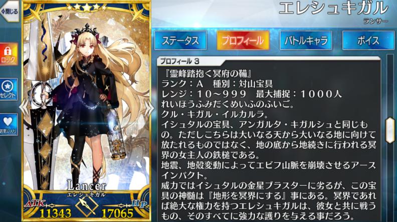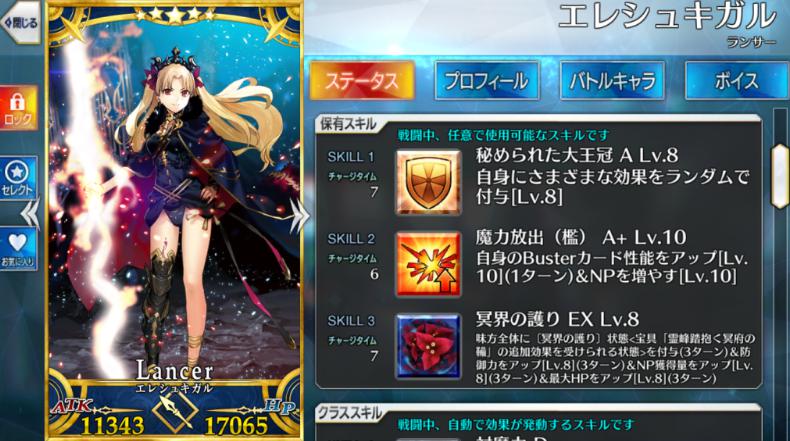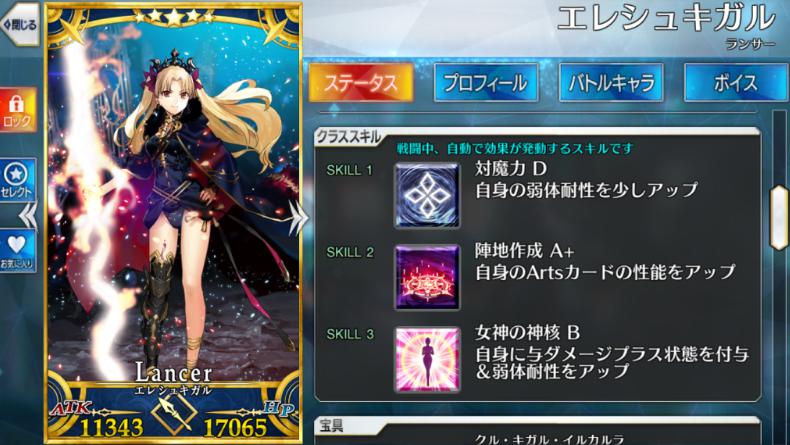 エレシュキガルのステータス