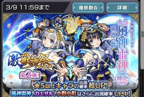▶︎激獣神祭の新キャラ、風神雷神が欲しい!