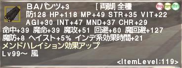「BAパンツ+3」よりも魔命が大幅に上がる「GOパンツ+3」にしなかったのは、アイテム欄が足りないからです……